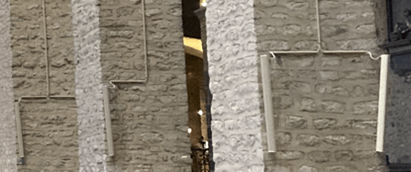 Avant: 200m de tubes apparents avec 2 haut-parleurs sur chaque colonne.